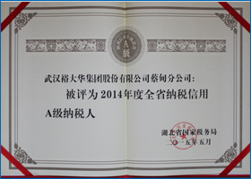 2014年--获2012~2013年度纳税信用等级:A级纳税人(2014.11)(武汉市国家税务局    武汉市地方税务局)